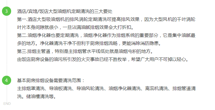 3、油污長期積累在油煙機內(nèi)部、煙道內(nèi)部還將形成火災隱患。