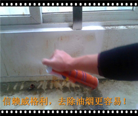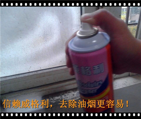 8、廚房的玻璃上和墻壁上也沾滿了油漬,有時候還有一些小飛蟲的尸體等亂七八糟的東西,我們用洗多多罐裝泡沫油煙機(jī)清洗劑,輕輕一噴,雪花狀的泡沫就會灑滿到臟玻璃和墻壁上,很快的和油漬起反應(yīng)。