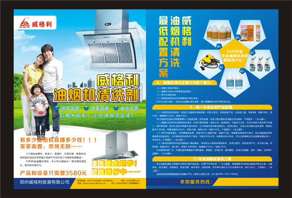 現(xiàn)在到春節(jié)期間,都是油煙機(jī)清洗的黃金季節(jié),洗多多*費(fèi)培訓(xùn)清洗技術(shù),產(chǎn)品帶工具3580元就可以做單項(xiàng)的洗多多油煙機(jī)清洗,還*費(fèi)贈送各種宣傳彩頁大海報工作服等。產(chǎn)品帶工具9800元就可以做*各種家電清洗,誠招合作小伙伴!招商熱線:0371-63396295 63396297