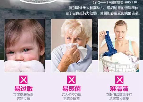 這些滋生的細(xì)菌、真菌不但會污染衣物,還會通過衣服二次污染,對婦女和小孩危害*。
