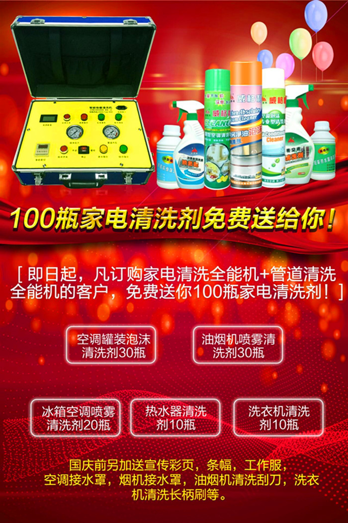 即日起,凡訂購家電清洗*能機+管道清洗*能機的客戶,*費送你100瓶家電清洗劑!