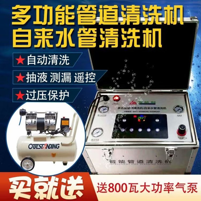 另一款是智能管道清洗機,可以清洗地暖和自來水管等各種管道。采用脈沖清洗和藥劑清洗兩種方式,功能更齊*,每套3800元,含氣泵,各種管線及五金件。