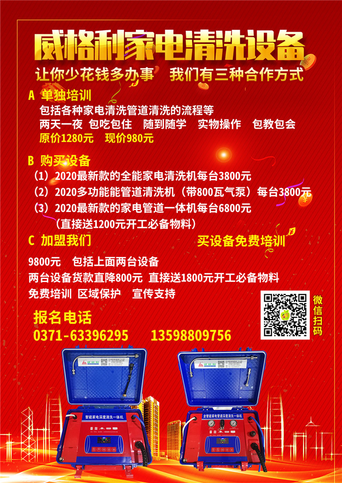 單項加盟商不提供區(qū)域保護,不享受代理價,根據(jù)不同的清洗項目有相應的*配置*。產品加工具只需要4980元就可以做*空調清洗或者3580元做專業(yè)油煙機清洗。