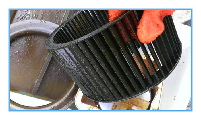 這是柜式空調(diào)內(nèi)部風輪,這樣的空調(diào)吹風夾雜大量細菌,威脅你我健康!
