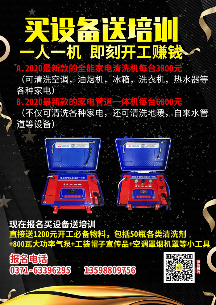 威格利信陽家電清洗正特惠招商:沒有加盟費,*費培訓各種家電清洗技術,*費配送各種宣傳品,產品帶工具*只要9800元就可以加盟從事這個行業(yè),信陽家電清洗加盟就要找到效果與實力并存的加盟品牌。