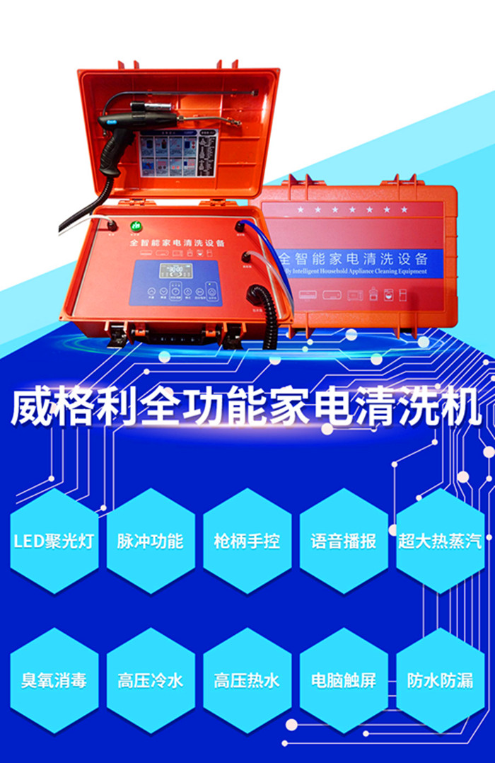 現(xiàn)在要想干家電清洗,只需要花3200塊錢買臺威格利*能家電清洗機(jī)就可以開工干活。這臺*能家電清洗機(jī)具有高溫高壓、冷水高壓、熱水、熱蒸汽、臭氧消毒以及脈沖清洗等功能。可以輕松的清洗各種家電,比如空調(diào)、油煙機(jī)、冰箱、洗衣機(jī)、熱水器等。